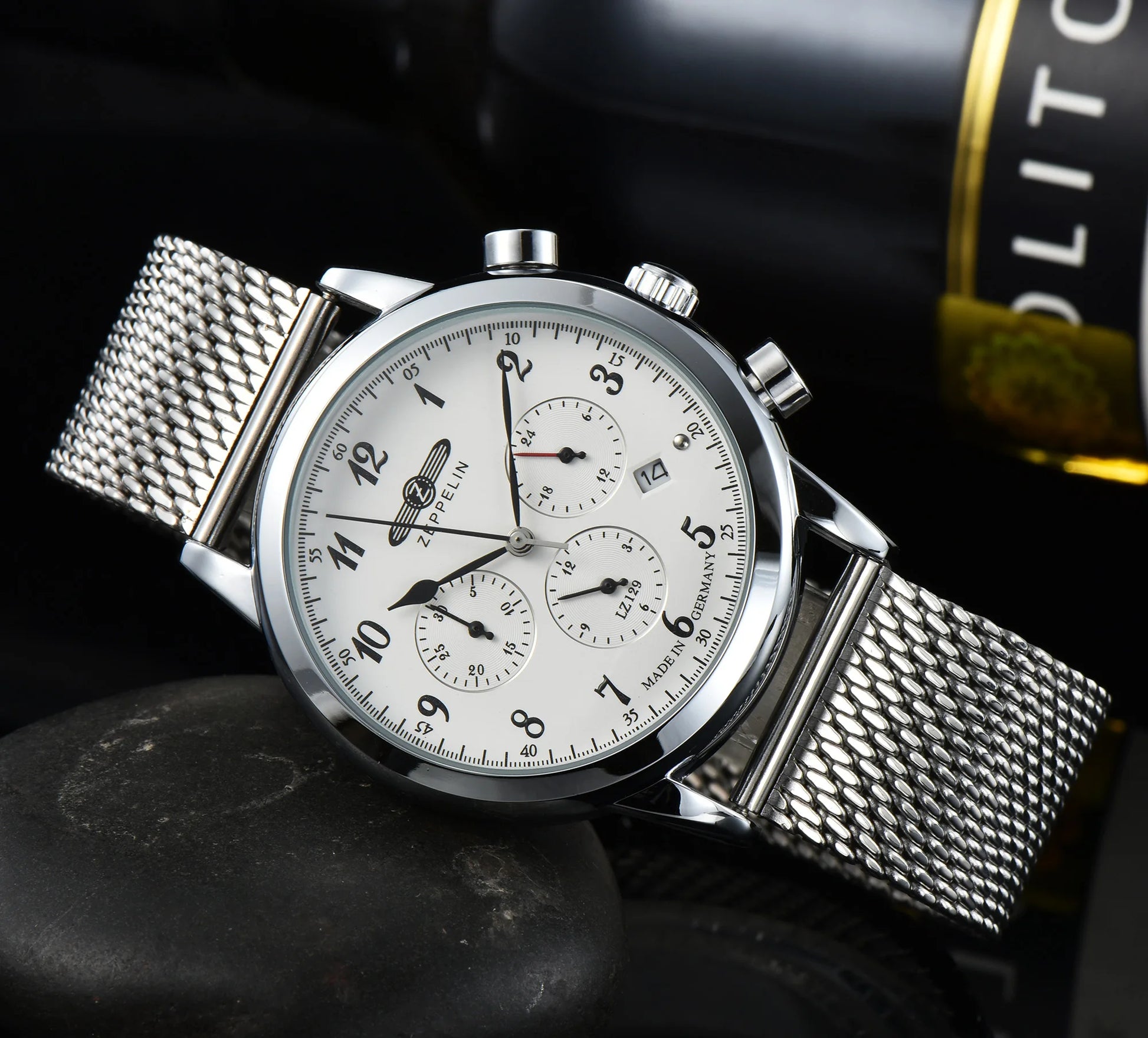 Built with a classic chronograph layout and a clean, high-contrast dial, this timepiece balances precision with timeless design. A reliable quartz movement powers the stopwatch function, while the solid metal case and steel strap give it a confident, everyday weight.