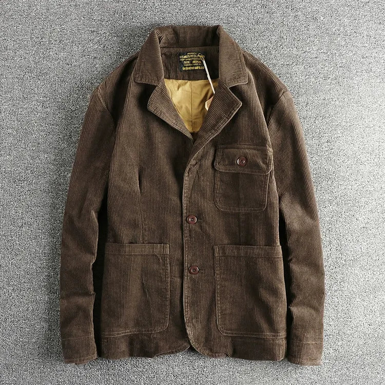 For men who want effortless texture and laid-back style in transitional weather, this vintage-washed corduroy jacket offers a loose single-breasted fit with soft comfort and trendy casual appeal.